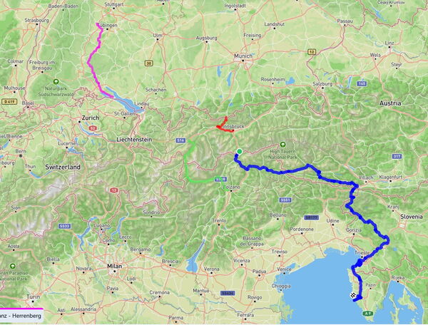 Mittenwald/Brenner bis Rovinj und Vrsar - Rückweg Bozen - Landeck und Konstanz - Herrenberg