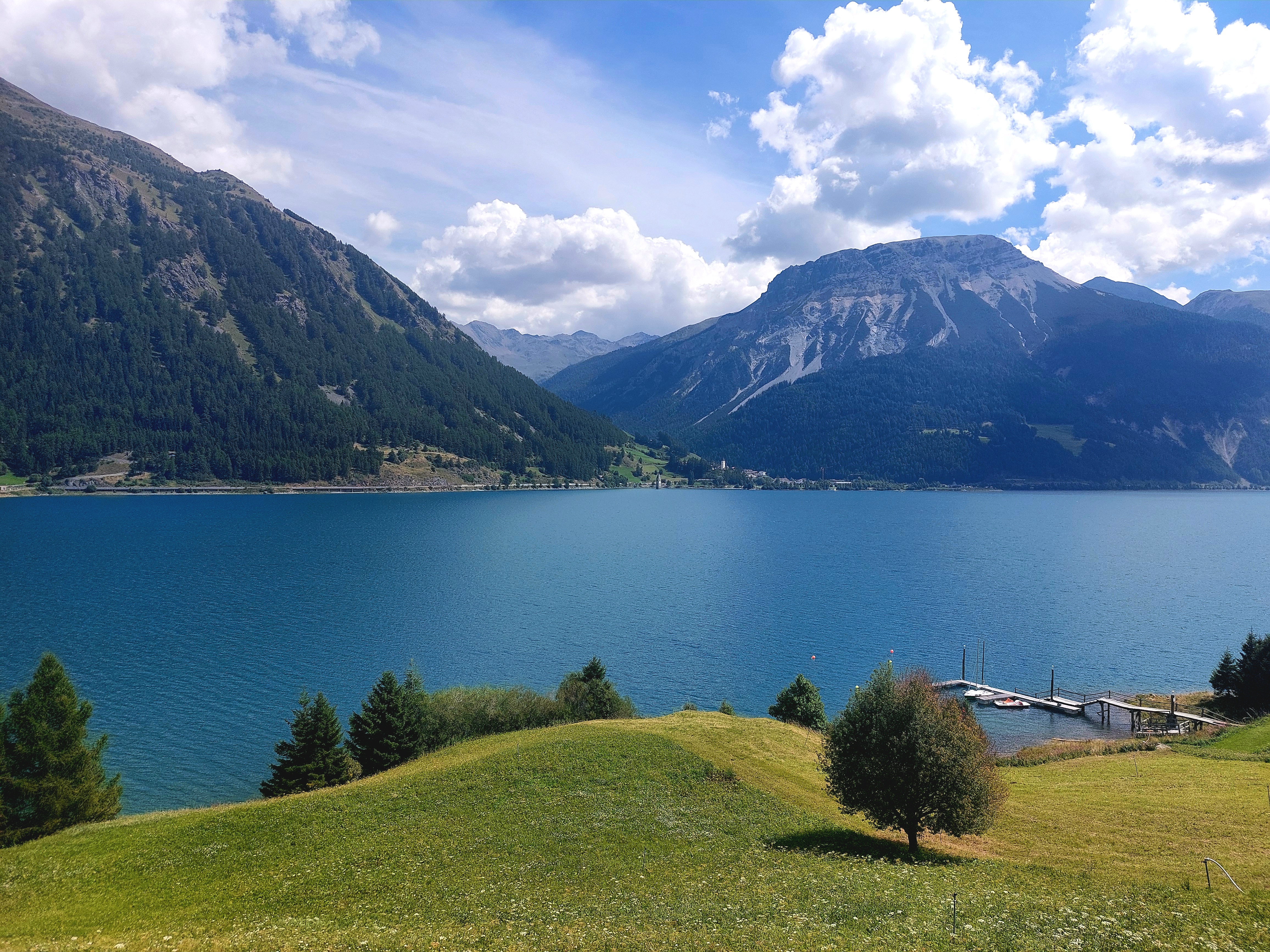 Zunächst geht es durch schöne Seen bei Prad und dann der Etsch entlang aufwärts.