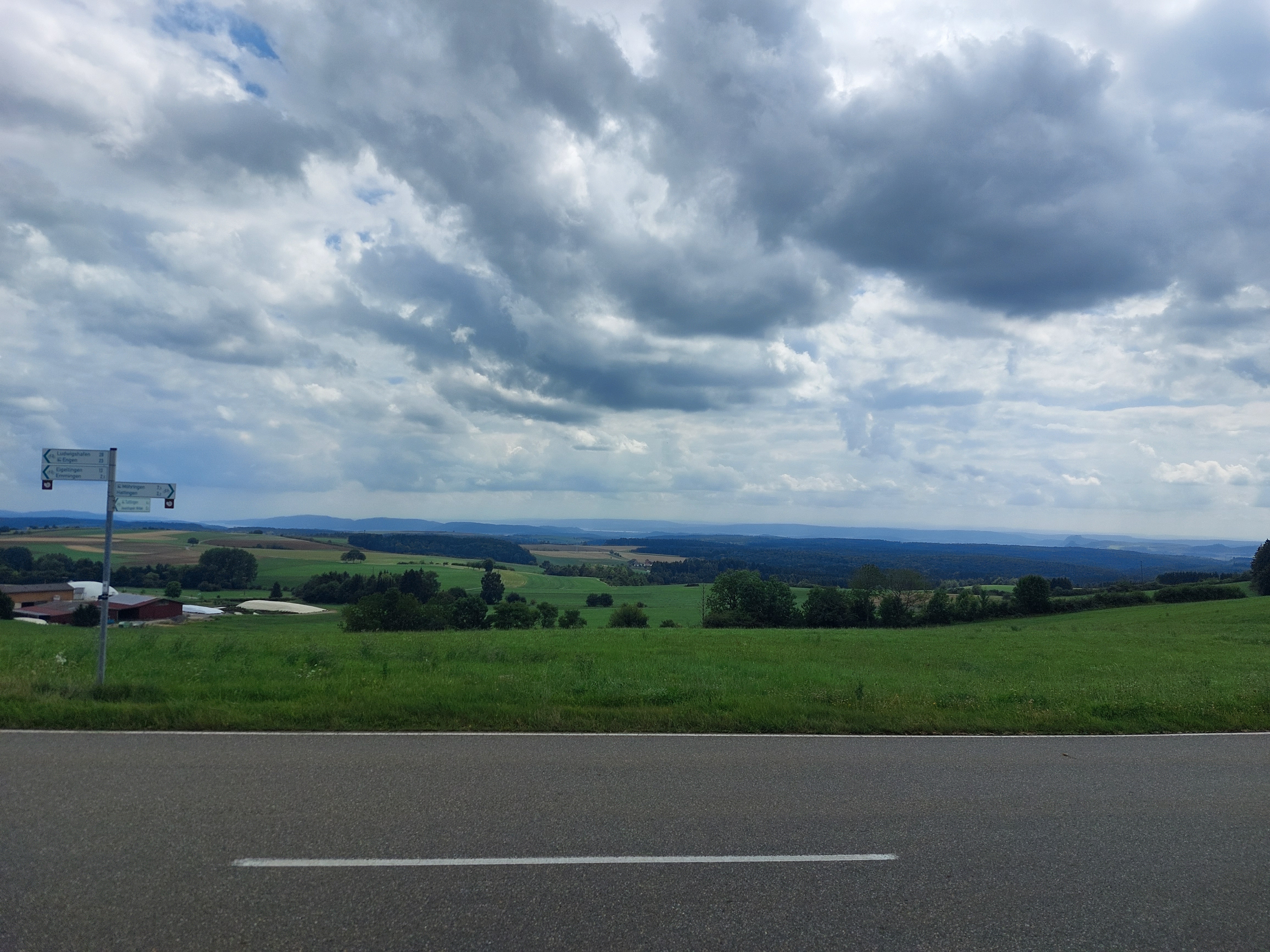 Noch ein wenig auf und ab, und es geht hinab nach Tuttlingen. Ist da was mit meinen Bremsen? Ich tue langsam, schaue nach einem Fahrradladen, um neue Bremsbeläge zu kaufen. Dort merke ich dann, dass am Hinterrad an der Scheibenbremse eine Scheibe abgegangen ist. Wir haben Glück, dass da jemand ist, der sich auskennt, zwar keine neue Scheibenbremse hat, die reinpasst, aber ein Adapterstück wie vorhin, sodass ich wieder fahren kann. Neue Bremsbeläge hat er nicht - die Magura Louise wird wohl schon seit längerem nicht mehr gebaut. Heute und morgen wird das noch reichen, denke ich.