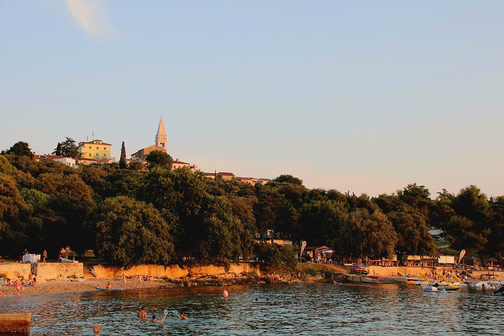 Zunächst kaufen wir noch was für das Frühstück und für das Mittagessen im nahegelegenen Konzum. Nach 5 km machen wir die erste Pause, weil wir heute Zeit haben - 12 km müssen wir radeln, die Fähre geht erst nach 18 Uhr. Wir schwimmen und machen Pausen, fahren dann weiter. Dann kommen wir nach Porec, schauen uns etwas um, fragen am Dom mit Ausstellung, ob wir mit unseren kurzen Hosen rein dürfen - ein Typ meint, das sei hier katholisch. Da komme man mit kurzen Hosen nicht rein. Ich entgegne, dass ich das ganz anders kenne, auch in katholischen Kirchen, und dass ich keinen Grund kenne, warum ich mich nun umziehen sollte. Dann kommen ein paar Leute aus der Ausstellung raus - genauso gekleidet wie wir, die Frauen mit dünnen Schals, die sie in den Händen halten: Wenn das der Anstand ist, der hier gefragt ist - dann ohne mich.