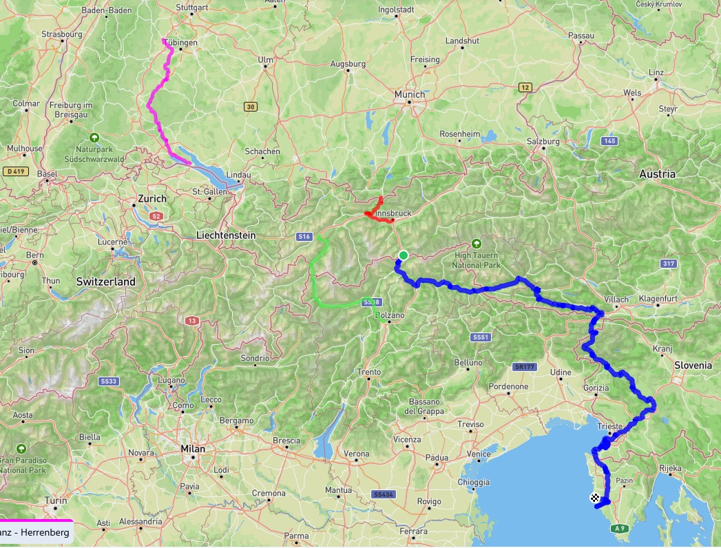 Transalp Sommer 2025 von Mittenwald nach Rovinj und von Bozen nach Landeck
